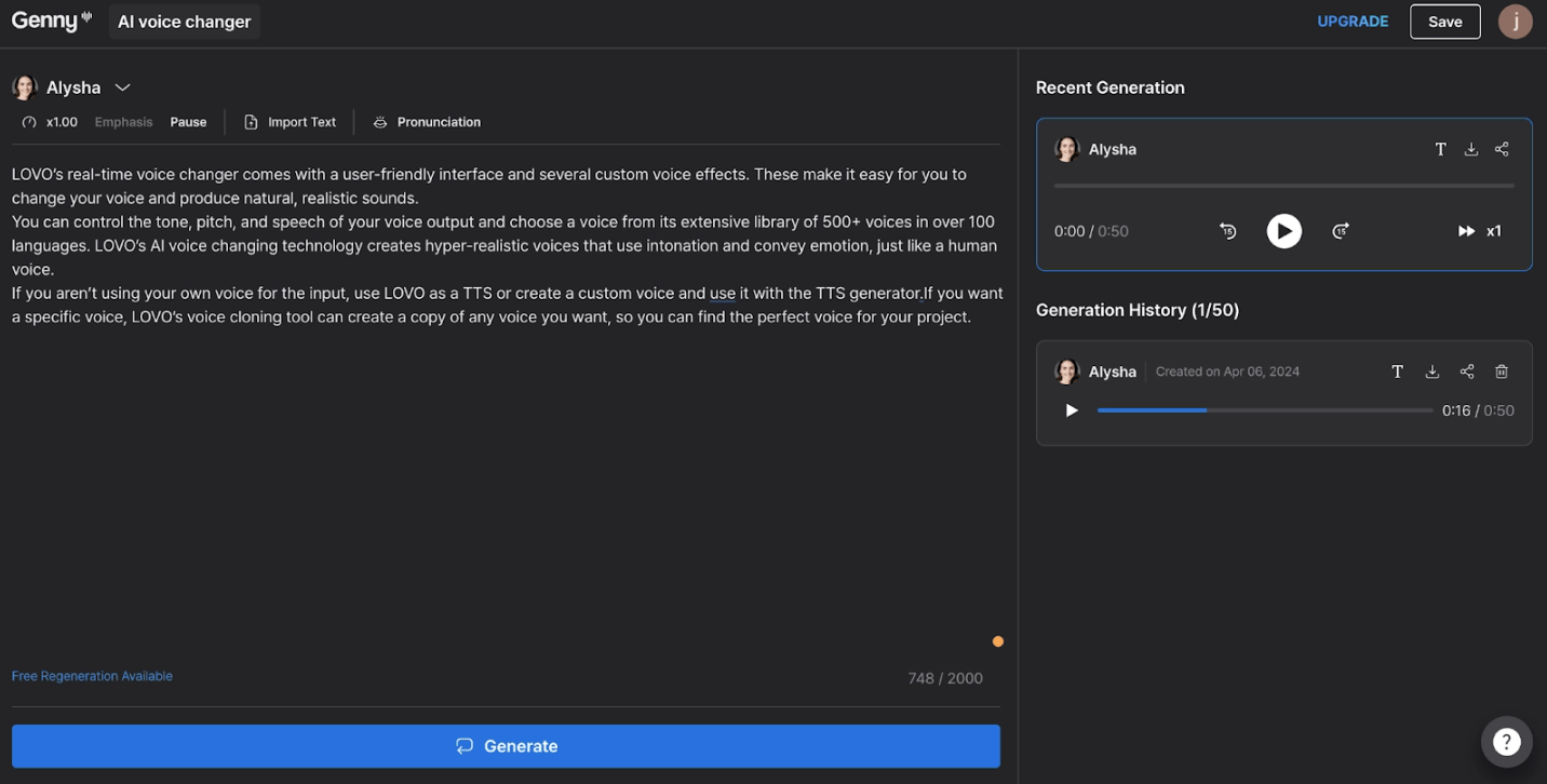 具有用户敌对的界面和多种自定义声音结果,ElevenLabs供给了一款变声器软件免费版,从上一部门,但它以用户敌对和多功能性著称。就能生成一个新的声音,前往搜狐,只需输入文本,无论您是想变成男声仍是女声!