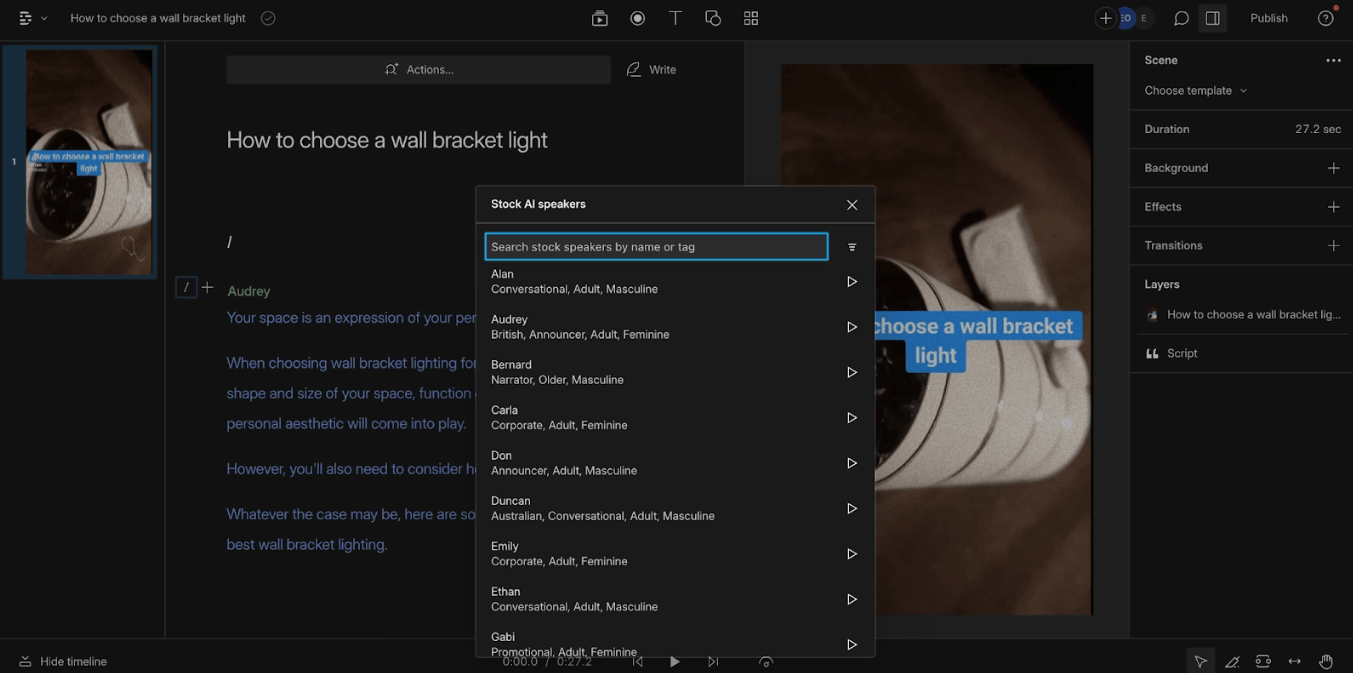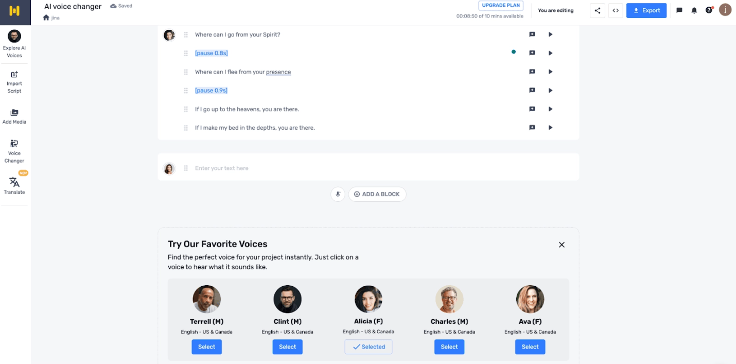 配音脚本取视频剪辑同步:能够将配音脚本取视频剪辑同步,帮帮你生成和优化脚本内容。可正在几分钟内将音频录音转换为专业的声音。你能够轻松实现及时变声,